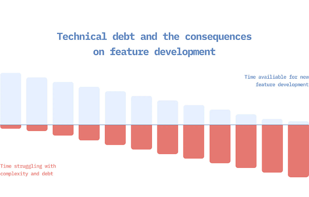 An important consequence of that accumulated debt is opportunity cost, meaning an increase in time spent dealing with unplanned work and defects and a decrease in time available for customer-facing features.